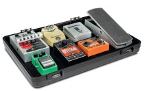 Nyt lyödään kaksi härkästä yhdellä läimäyksellä. Asennetaan muovisen tarvikesalkun syvemmän puoliskon pohjaan auki taiteltava kitarateline, jonka saa kuljetuksen ajaksi jälleen viikattua kasaan ja lukittua tarranauhalla. Ja ohkaisemmasta kannesta tehdään pedaalilauta, johon kitaristin rasiat saa ojennukseen.