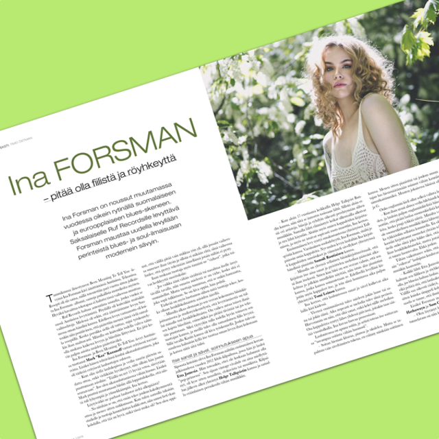 – Aina löytyy näitä ”blues-miehiä”, jotka hieman katkerana saattavat tulla keikan jälkeen sanomaan, että kyllä se kitarakin olisi sinne mahtunut ja vähän jäin kitarasooloja kaipaamaan. Itse ajattelen niin, että varsinkin blues-skenessä, blues-festareilla, joilla paljon keikkailen, se kitara on niin pääelementti, että kyllä ihmiset saa siitä tarpeekseen. Yritän tuoda jotain erilaista, ja on myös ihan kiva saada ihmiset hieman varpailleen. Jos asiasta joku vähän loukkaantuu, niin jopa hieman nautin siitä, Ina Forsman lataa.