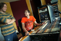 Lauri Heikkilä ja Leo Melin tekevät äänituotantoa monipuolisesti. Tamperelaisella Astral Studiolla riittää rahkeita sekä analogiseen että digitaaliseen työskentelyyn.