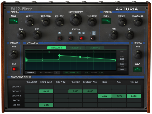 Filter M12 viittaa Oberheiminn Matrix 12 -syntetisaattoriin ja samaa sukupuuta on toinenkin Tom Oberheimin alkuperäissoittimeen perustuva virtuaalisuodin, Sem.