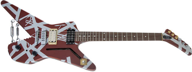 Tarina lähti Van Halenin muinoin omistamasta offset-mallin soittimesta, josta hän sahasi irti palasen. Sitten hän värjäsi kitaran hopeisella maalilla ja veteli raitojen paikat teipillä. Sen jälkeen päälle viininpunaista pyörämaalia, teipit veks´ ja Shark oli valmis.