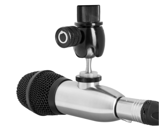 Adapterissa on todella jäykästä, mutta silti riittävän joustavasta materiaalista valmistettu putkimainen hahlo, johon mikrofonin runko pujotetaan.